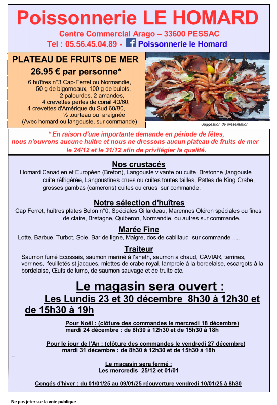 Bienvenue à la Poissonnerie Le Homard à Pessac